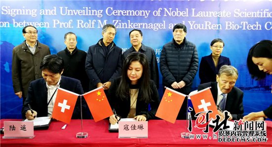 今天,诺贝尔生理学或医学奖获得者罗夫•辛克纳吉与河北佑仁生物科技有限公司在石家庄签约,建立国内细胞领域首家诺贝尔奖工作站。![]() 11月28日,诺贝尔生理学或医学奖获得者罗夫•辛克纳吉与河北佑仁生物科技有限公司在石家庄签约,建立国内细胞领域首家诺贝尔奖工作站。 记者马彦铭摄 罗夫•辛克纳吉是世界顶级免疫学科学家、苏黎世大学实验免疫学教授,因发现免疫系统如何识别病毒感染细胞,与澳大利亚学者彼得•杜赫提共同获得1996年诺贝尔生理学或医学奖。他在免疫学专业领域具有卓越成就和杰出贡献,特别是在T细胞免疫学方面有着深厚科学造诣。 ![]() 11月28日,诺贝尔生理学或医学奖获得者罗夫•辛克纳吉与河北佑仁生物科技有限公司在石家庄签约,建立国内细胞领域首家诺贝尔奖工作站。 记者马彦铭摄 专家介绍,该诺贝尔奖工作站建立后,将以全球化视野开展对细胞应用技术的基础研究与转化应用,推动河北省细胞应用技术的基础研究、临床转化和产业化进程。 ![]() 11月28日,诺贝尔生理学或医学奖获得者罗夫•辛克纳吉与河北佑仁生物科技有限公司在石家庄签约,建立国内细胞领域首家诺贝尔奖工作站。图为罗夫•辛克纳吉(左一)讲话。 (责任编辑:admin) |